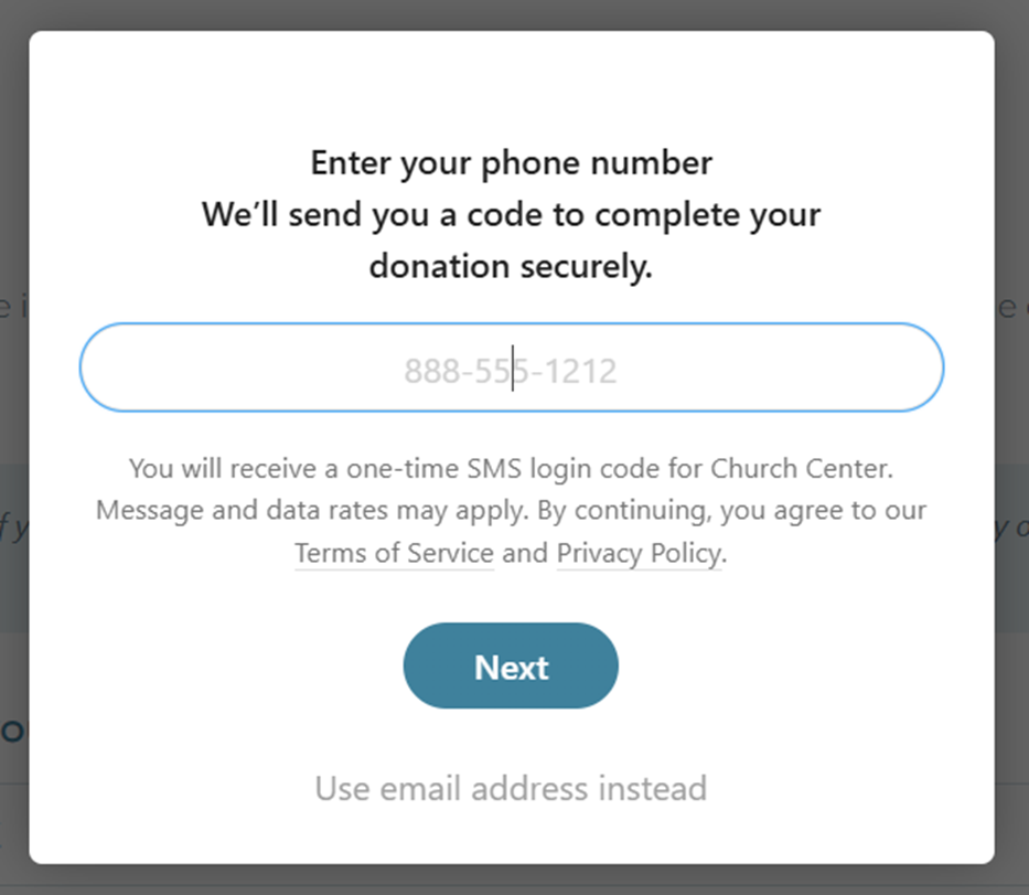 Step 3: Log In by Phone or Email Planning Center uses a simple, passwordless login. Enter your phone number or email address and you’ll receive a one-time code to verify your identity. No account creation or password to remember.